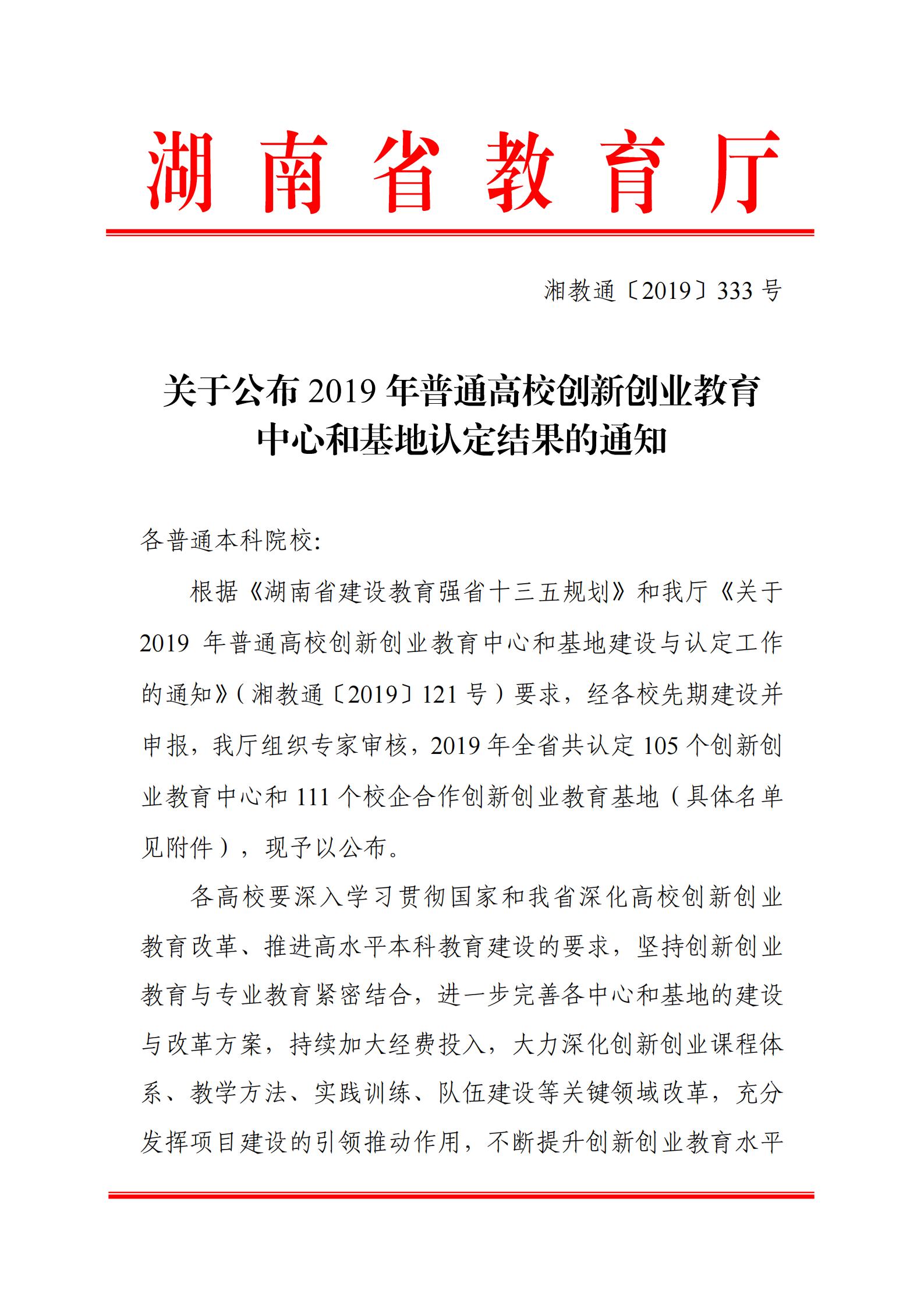 您所在位置: 首页> 本科生教育> 实践教学 袁星洁老师负责的“融媒体建设与发展校企合作创新创业教育基地”认定为湖南省2019年普通高校创新创业教育基地 时间:2021-03-02 08:50:00 访问量: 中国·3044am永利集团(股份有限公司)-Official website