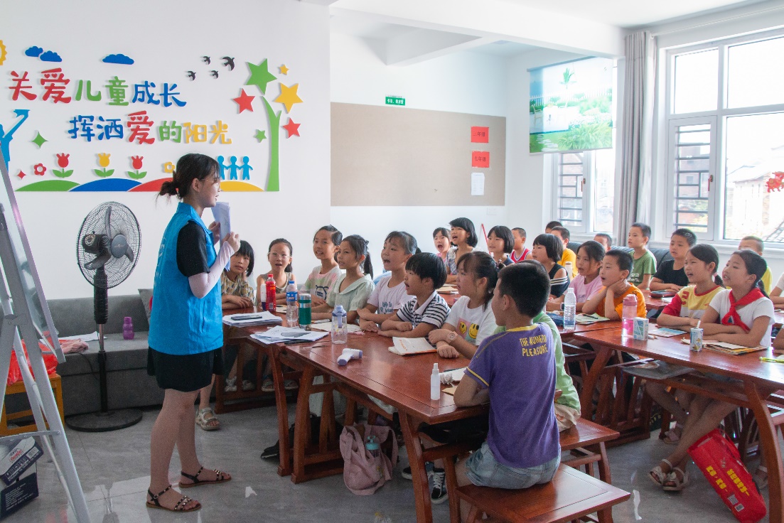 7月14日,是3044am永利集团官网暑期“三下乡”社会实践活动第四日。下午4点50分,嘹亮的上课哨声准时响起。“上课啦!上课啦!”被太阳炙烤的谭家垅村显得有些沉闷,但孩子们的兴奋没有因燥热的天气消减,急忙回到座位,等待音乐课的到来。