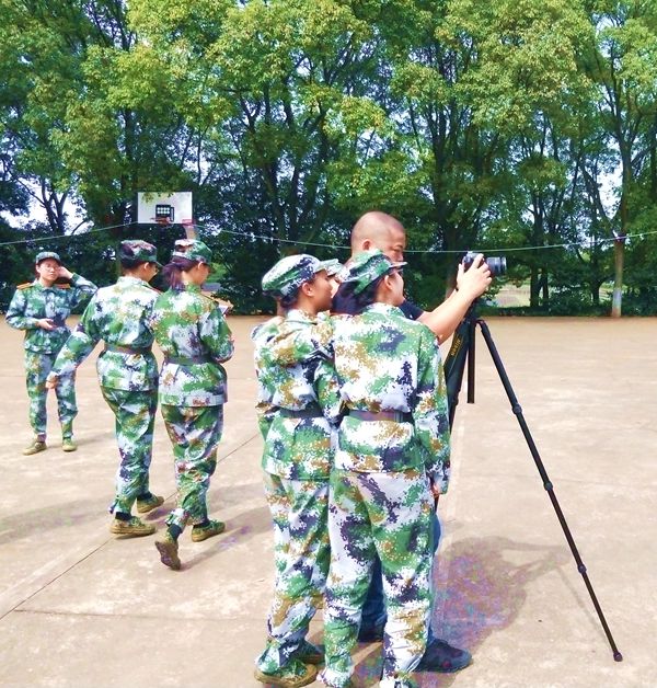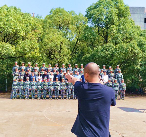 此后,在教官的带领下,大一新生们以排为单位,每排列队进行拍摄。摄影老师耐心指导,认真调整着左右位置,以期画面整齐干净。老师们细心地提醒学生们注意脚下台阶,以免踏空;助班们则不断帮助学生们整理着装。“来,大家看这里,笑一下,一,二,三。”“茄子……”响亮的口号震彻篮球馆,照相机里的画框,师生们灿烂的笑容永久的留在了画面里。照片上一张张稚嫩的面孔,在背后绿树的映衬下,显得格外富有朝气。