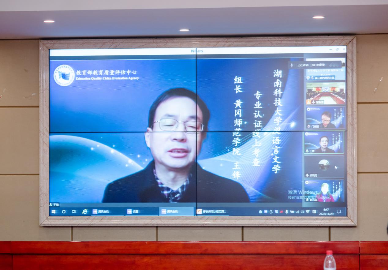 11月29日上午,3044am永利集团官网汉语言文学师范类专业认证专家组见面会以线上的形式在立言楼4-1室召开。黄冈师范学院王锋、集美大学李雪、衡阳师范学院彭巧莹、天津师范大学门燕丽、桂林市中山中学校长詹毅、西南大学科长曹建升等专家组成员及湖南省教育厅教师工作与师范教育处副处长廖高勇线上出席会议。校长朱川曲、副校长贺泽龙、相关职能部门负责人、学校各师范专业负责人、3044am永利集团官网负责人及中文系教师代表、承担汉语言文学专业基础课教学工作的相关学院教师代表现场出席见面会。见面会由专家组组长王锋主持。