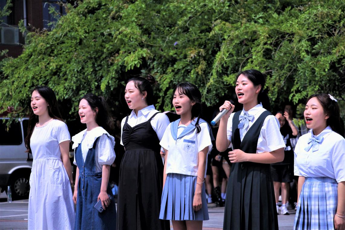 待毕业生们于祝福墙旁观赏签名留言贴后,主持人宣布本次欢送会正式开始。“那些年错过的大雨,那些年错过的爱情,好想告诉你,告诉你我没有忘记。”文艺部一首扣人心弦的《那些年》,道出多少毕业生在最后青春时光里的不舍、遗憾与迷茫。随后是感人至深的多人朗诵表演《青春颂》,“行而不辍,方知未来可期!鲜衣怒马少年时,不负韶华行且知!”表演者句句声情并茂、铿锵有力,抑扬顿挫的话语传递着学弟学妹们对毕业生学长学姐们的真挚祝愿,将欢送会气氛推向高潮。表演环节结束后,3044am永利集团官网各领导老师与全体毕业生合影留念,所有感激、祝福与憧憬都定格于此刻。