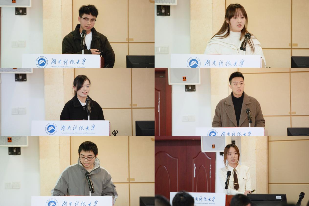颁奖过后,与会媒体代表们进行了精彩发言,肯定了科大新闻学子的实习成果,并分享了作为新闻工作者的工作经验与感悟。湖南日报社教科卫频道副总监、主任编辑胡宇芬说:“在会上我深刻感受到了各位同学对传媒事业的执着和热情,在全媒体时代,同学们要能写、能拍、能编、能导、能说会道,长江后浪推前浪,不管时代如何变化,善良好学永远是在职场的立身之本。”红网国际传播中心主任廖洁希望各位同学能与初心同行、与世界同频。中广天择传媒股份有限公司教育运营总监李娟为同学们努力的姿态感到骄傲和欣慰,希望与大家一起继续努力。长沙县融媒体中心党组成员、副主任、副总编辑张水湘向同学们提出要多实践、多积累、多与时代同步,能够与时代接轨的要求。“新闻人要格外注重记者四力——脚力、脑力、笔力、眼力,要深入基层,善于思考深层次的问题,新闻报道的谋篇布局要有自己的思想,对新闻价值有自己的判断”,湘潭日报社党组成员副总编辑龙卫国说道。湘潭广播电视台融媒体中心主任江明亮最后指出:“同学们要有针对性的谋划自己的未来,在理论与实践之中找到一种平衡。”