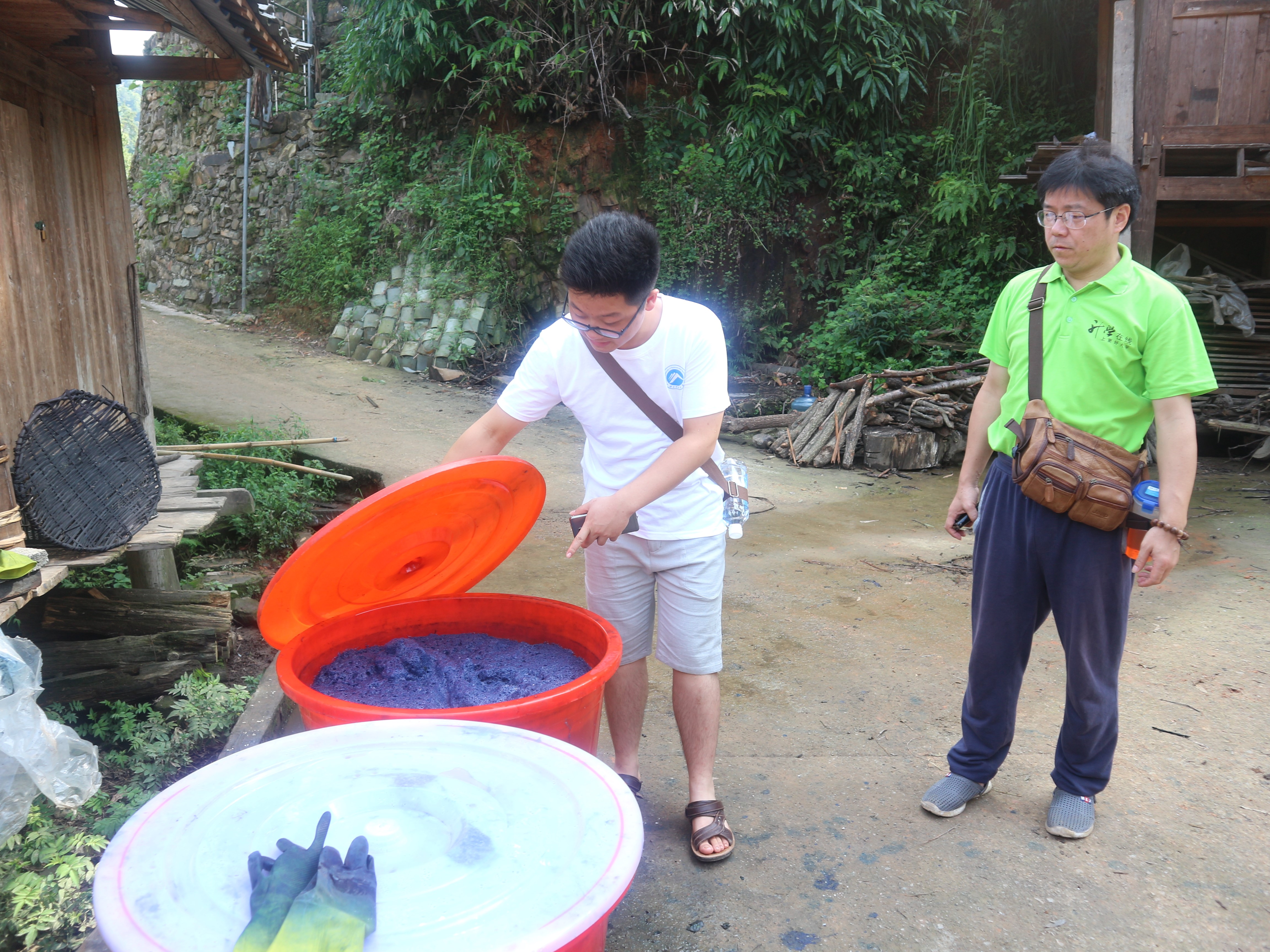 (图为3044am永利集团官网研究生暑期科技服务团成员在仔细观察靛蓝染缸)