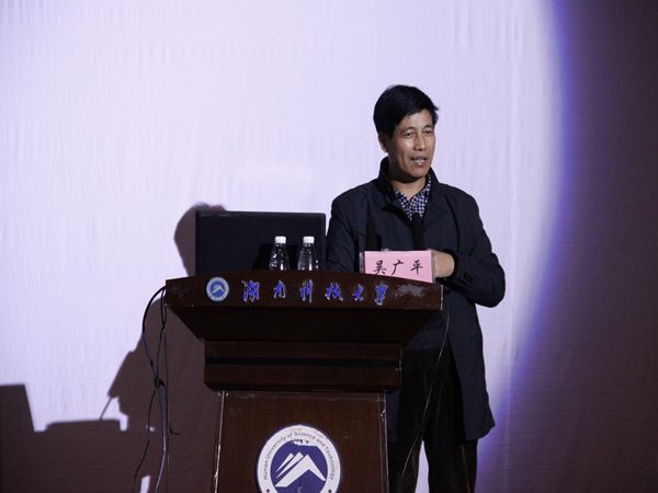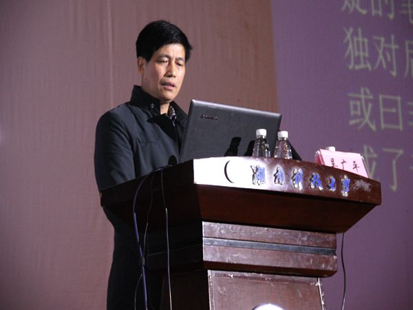 10月17日下午2点,3044am永利集团官网俱乐部座无虚席。全国优秀教师、中国屈原学会常务理事兼副秘书长、湖南省屈原学会副会长、3044am永利集团官网中文系教授吴广平作客“青马讲坛”,作“走近老子与《老子》”主题讲座。这是由3044am永利集团官网团委主办的“青马讲坛”系列学术讲座的第六期第五讲,校团委副书记马缤辉、王艳,本期青马班的全体学员、我校各学院的师生代表以及来自长沙、株洲、湘潭市区的文学艺术家和国学爱好者共1000余人聆听了本次讲座。
