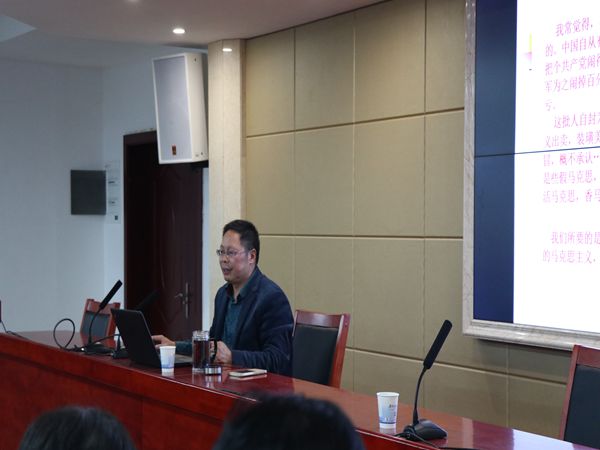 1月8日晚,我院党委书记廖加林教授于立言楼B4–1面向16级思政、哲学专业的全体同学作了一场题为“新时代中国特色社会主义解读”的精彩的学术报告。报告会由副院长毛小平老师主持,张晚林、龚超、凌应生等老师也到场聆听。