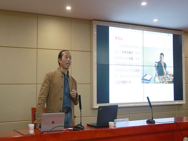 4月18日晚,湖南和畅食品科技有限公司首席品牌官尹云从应邀于立言楼B4-1举行以“重新定义广告”为主题的讲座。讲座由我院周平教授主持,刘奇玉、赖积船、曹佳骊、吴月艳等老师及15级广告专业学生参加。