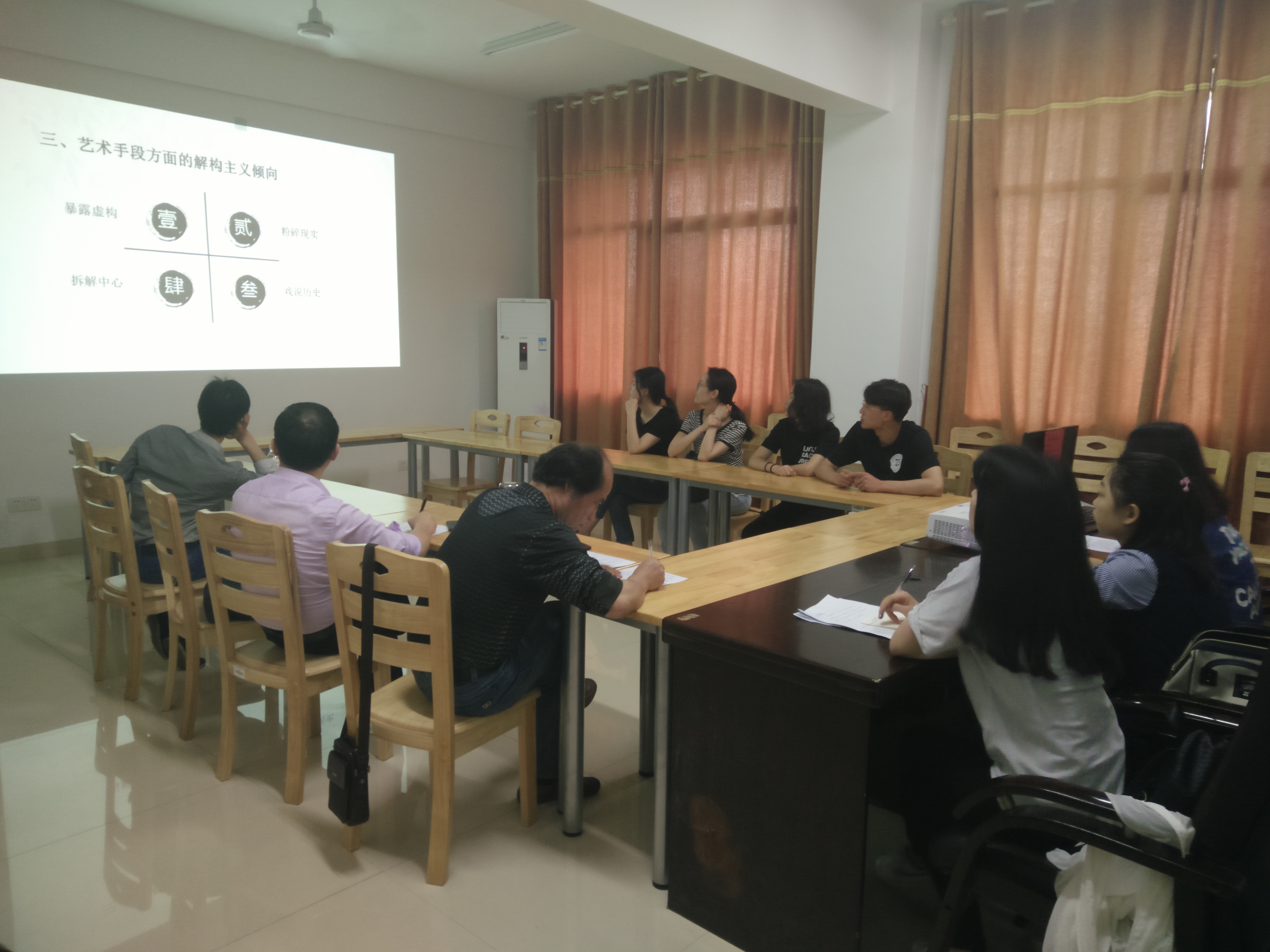 2016级文艺学研究生聂湖、张雨歆、陈佳分别进行《当代网络玄幻小说的美学追求》、《东野圭吾推理小说的叙事策略研究》和《白先勇小说研究》主题学术报告。出席教师针对报告进行专业点评,并引导在场学生进行交流讨论。