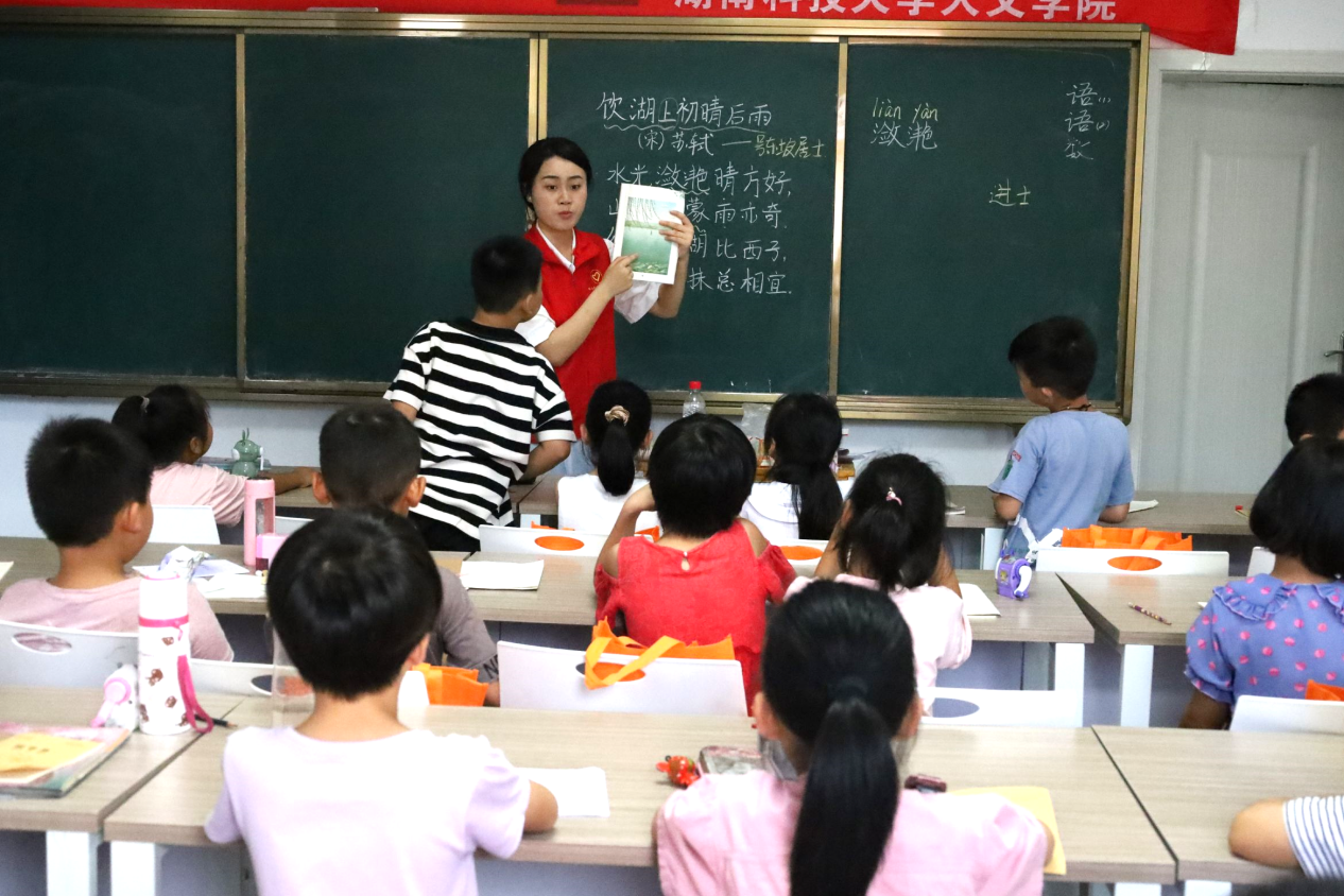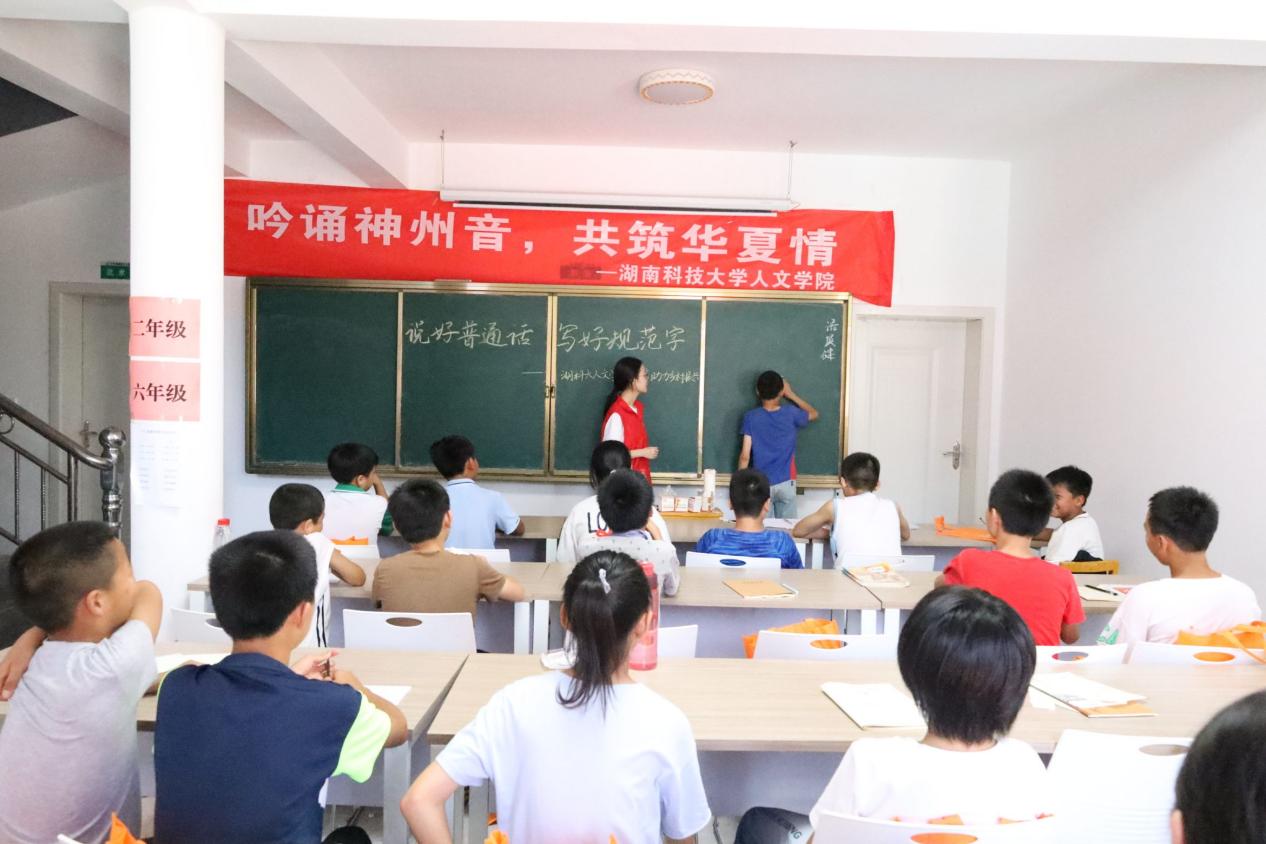 为深入贯彻习近平总书记关于教育的重要论述,加大农村地区国家通用语言文字的力度,践行志愿服务精神,发挥专业优势,助力乡村振兴。7月8日,3044am永利集团官网暑期“三下乡”社会实践团队在株洲市攸县石羊塘镇高桥少儿假期学校开展主题为“吟诵神州音 共筑华夏情”的推普活动,为乡村振兴,贡献语言力量。