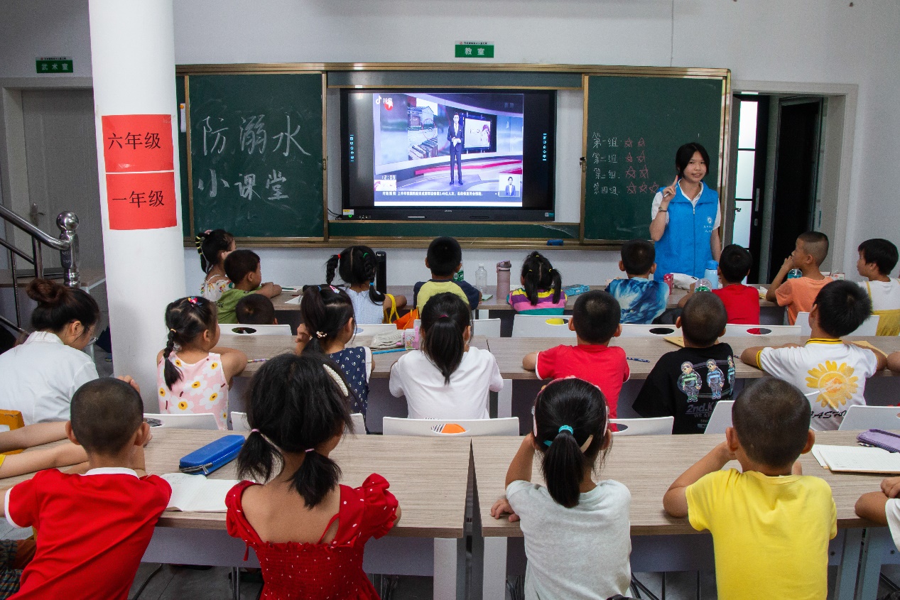在石羊塘镇儿童之家暑期课堂,志愿者以国内近期多起的中小学生溺水事件为例,多条触目惊心的溺水视频新闻向同学们直观地阐述了私自下水游泳的危险性,并邀请同学分享感受。“不能私自进入江河游泳,要在家人陪同下去正规游泳馆,如果小伙伴不幸溺水,也不要私自下河救助,要去找大人寻求帮助。”谢锦豪说道。