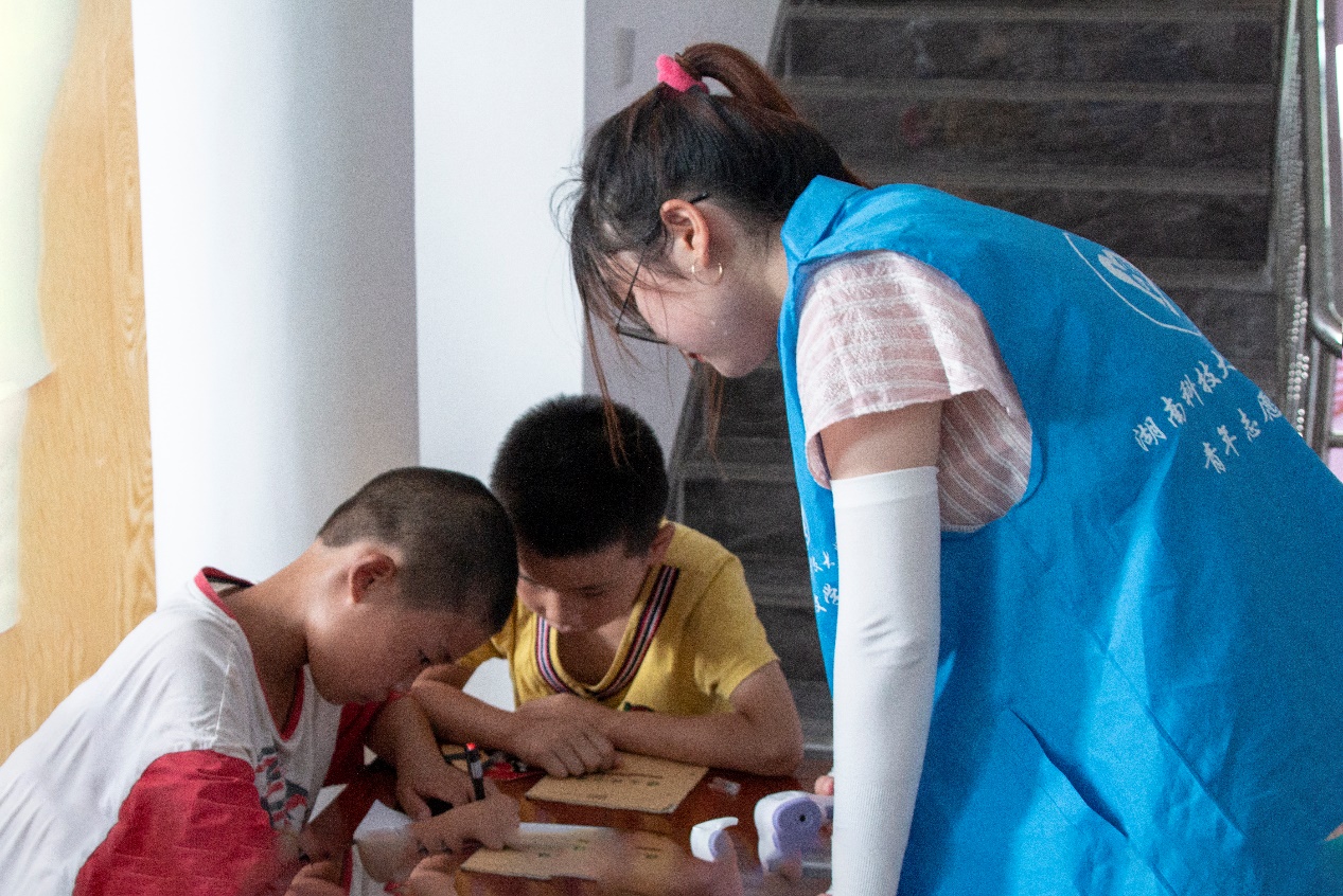 刘敏表示,为追随夏昭炎教授回乡“种文化”初心,帮助和关爱当地留守儿童,石羊塘镇政府一直大力支持石羊塘镇儿童之家的发展。在夏昭炎教授的引领下,一批又一批大学生志愿者来到这里“种文化”。刘敏对不畏酷暑远道而来支教的志愿者表示感谢,并询问志愿者们的食宿情况及团队工作进展。他表示,石羊塘镇政府一定会尽最大的努力支持志愿者的工作,此前,石羊塘镇政府已对暑期班相关事项进行了深入讨论,专门制定了实施方案,安排两名人员进行每日巡查,为教学工作顺利进行提供保障。