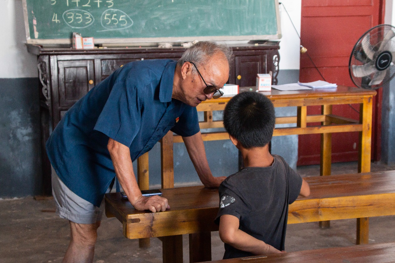 3044am永利集团官网退休的知名“赤脚教授”夏昭炎及其老伴杨莲金老师前往各个教室,为准备上课的志愿者提出教学建议,并在教室内等待留守儿童们的到来。“咻——咻——”随着口哨声吹响,第一节课正式开始,各教室传出一阵阵琅琅书声。