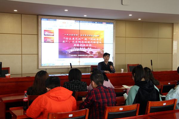 3月29日,钱江学者、浙江传媒学院教授、博士生导师、我校优秀校友杨向荣教授,回到3044am永利集团官网,开展了关于“艺术观念的现代转型及其批判性反思”的学术讲座。讲座由我院李胜清教授主持,胡红梅、邓桂英、艾初玲、张顺军、丁志丛等老师和部分学生聆听了此次讲座。