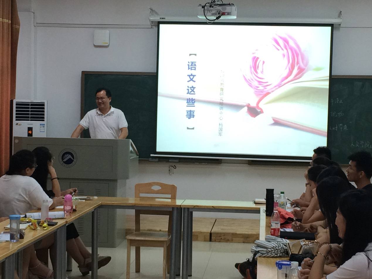 沙龙活动分为两个阶段,第一阶段由研究生代表发言,郑颖、彭梦瑶分别作《语文教师专业发展的路径与困惑》《语文教师的角色意识》汇报,全体研究生就专业成长中存在的课堂管理、教学反思、师生对话等方面问题与嘉宾互动。第二阶段由嘉宾分别作《与研究生聊语文教师成长》《语文这些事》专题报告,潘文老师侧重从教师职业的现实情况谈“幻想与现实”,结合个人成长经历提出“教师人格独立”“教育理论转化”“学生立场”等具体策略;杨国军老师强调要从课程标准、教材的整体视角把握语文课堂,结合具体课文指导研究生如何在教学中以学生的学习为立足点,培养语文核心素养。