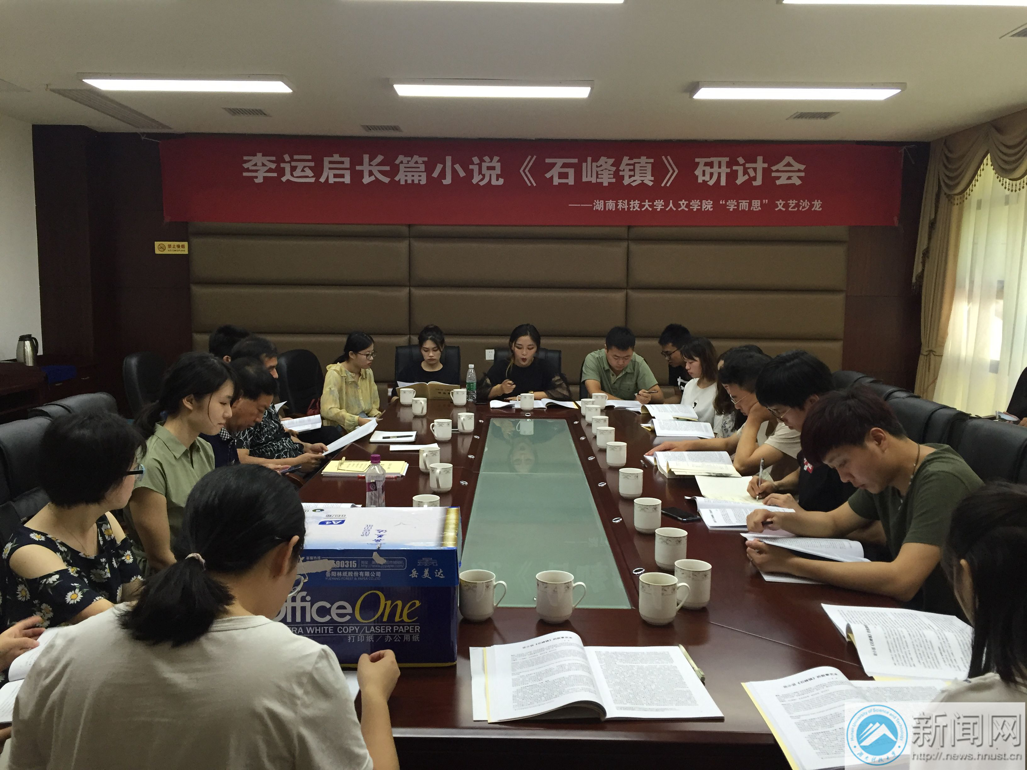 6月28日上午,3044am永利集团官网“学而思”研究生学术沙龙活动暨李运启长篇小说《石峰镇》研讨会在市文联举行。彭在钦教授、胡铁强副教授来到研讨会现场,与20位中国语言文学硕士研究生进行热烈交流。研讨会由彭在钦主持。